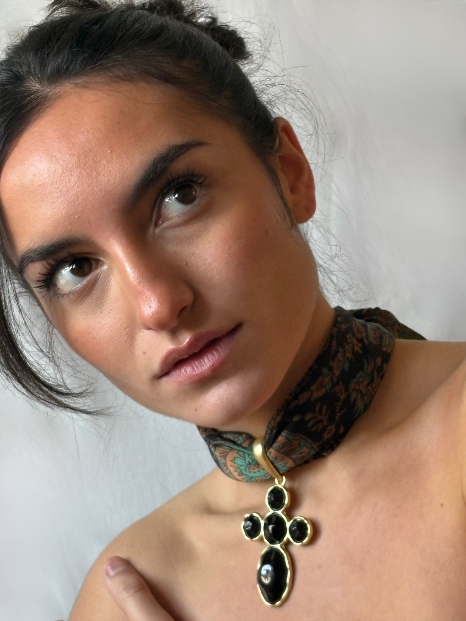 The Olimpo Collection embodies versatility and sophistication, designed to transition seamlessly from daily wear to special moments. More than just jewelry, these pieces blend high-quality stainless steel with meticulously selected silk scarves, creating a unique fusion of textures that enhance any style.